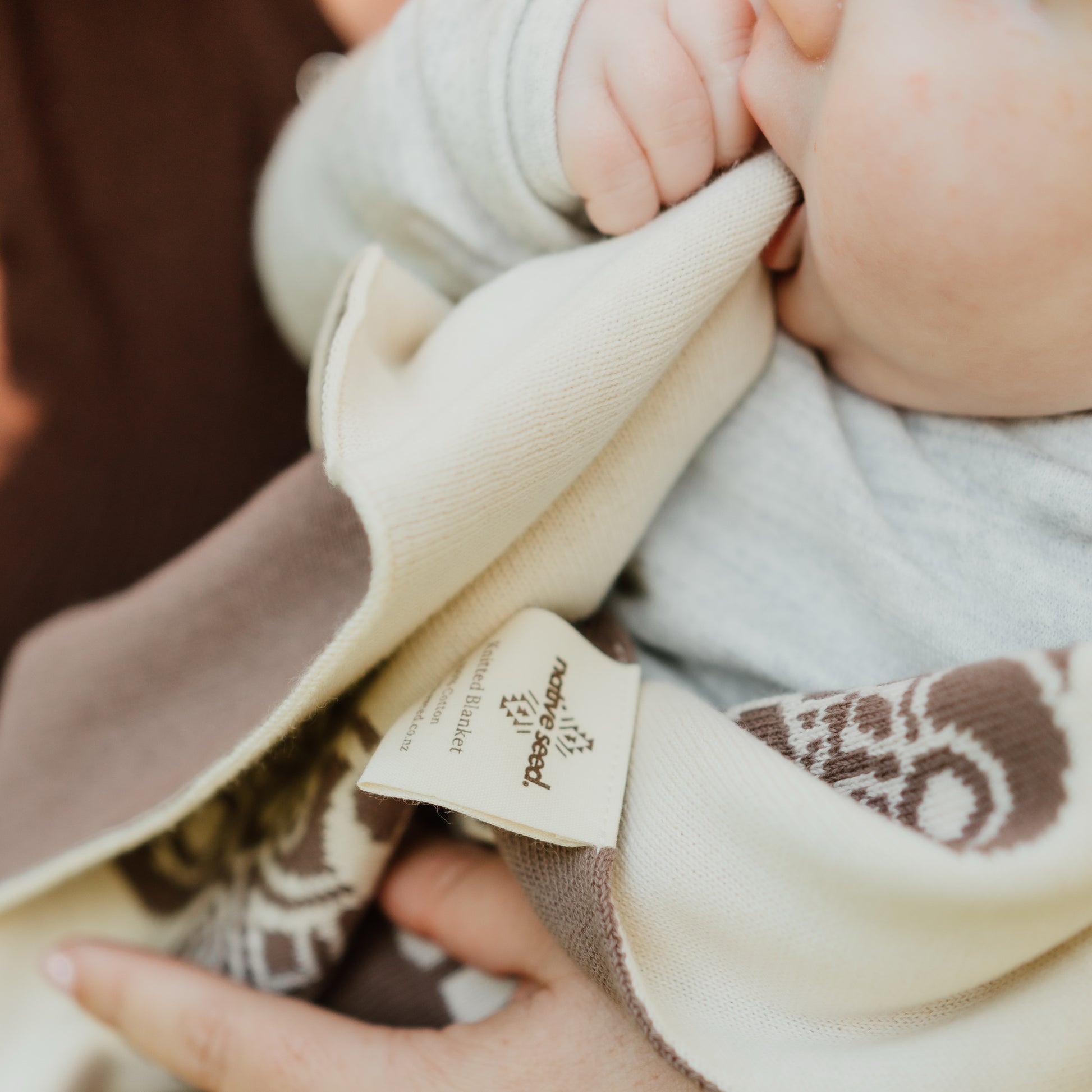 Wrap your pēpi in warmth and connection with our Tatau Pounamu Knitted Blanket. A beautifully crafted piece inspired by the stars that guide and protect us.